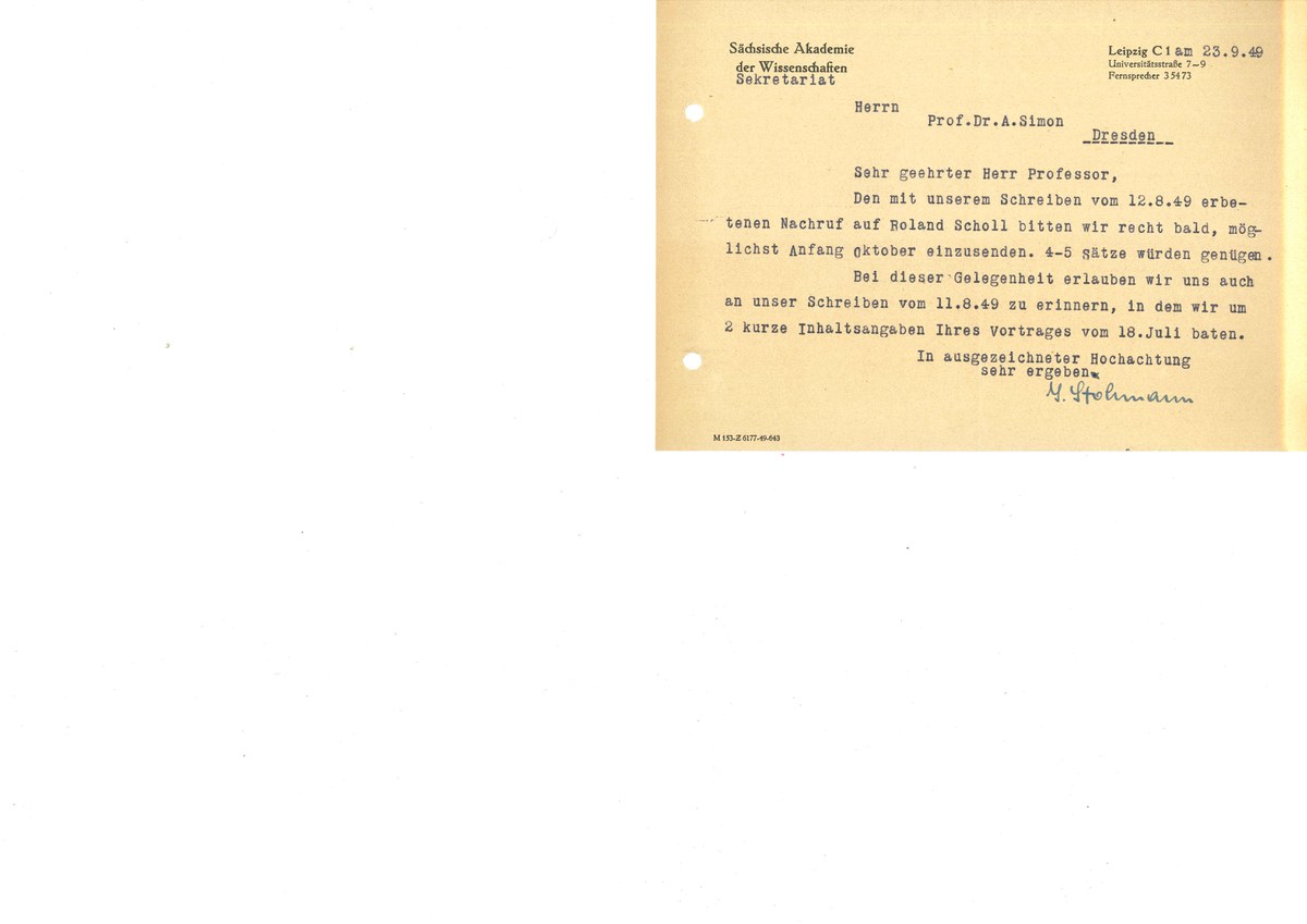 Ilse Stohmann an Arthur Simon (Leipzig, 1949-09-23)