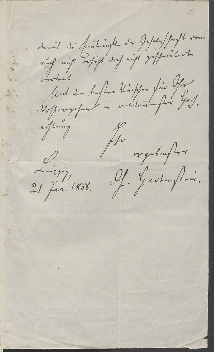 Gustav Hartenstein an Gustav Friedrich Hänel (Leipzig, 1858-01-21)