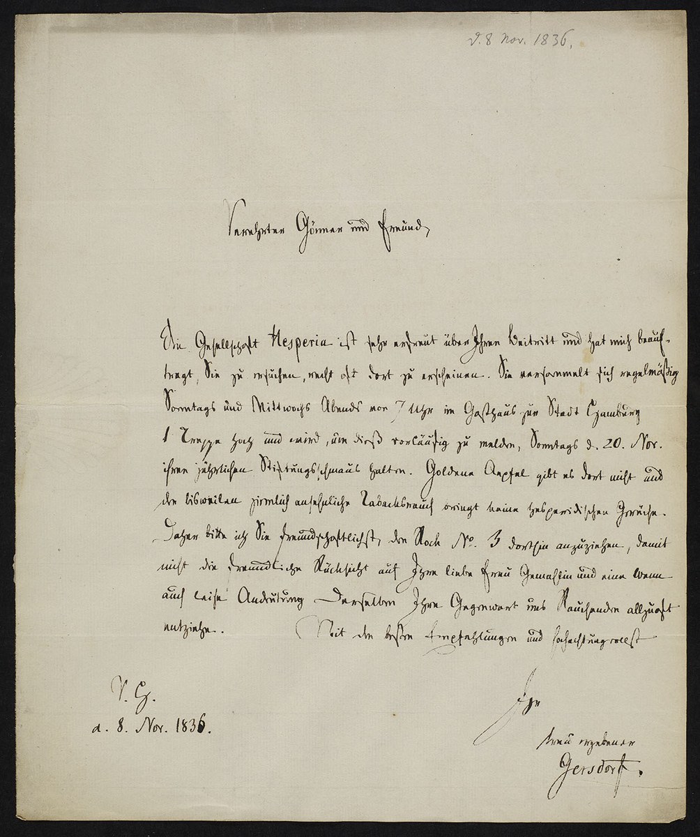 Ernst Gotthelf von Gersdorf an Heinrich Leberecht Fleischer (1836-11-08)