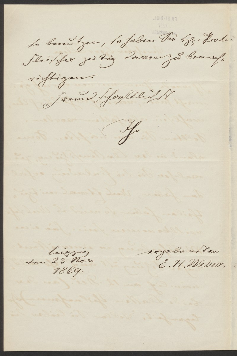 Ernst Heinrich Weber an Heinrich Leberecht Fleischer (Leipzig, 1869-11-23)