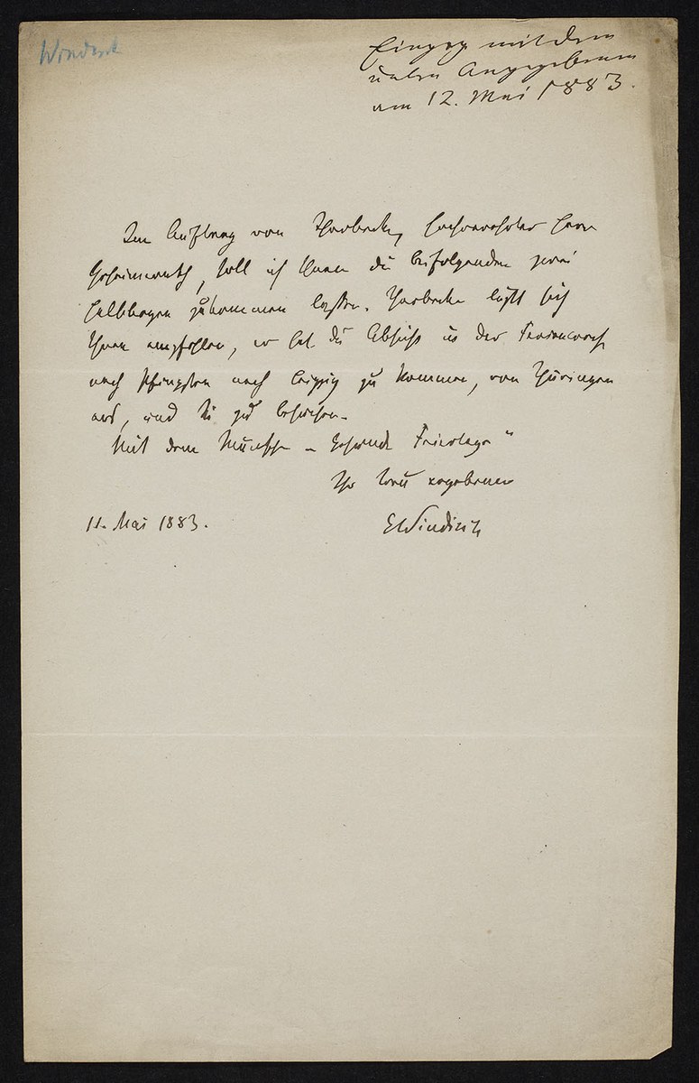 Ernst Windisch an Heinrich Leberecht Fleischer (1883-05-11)