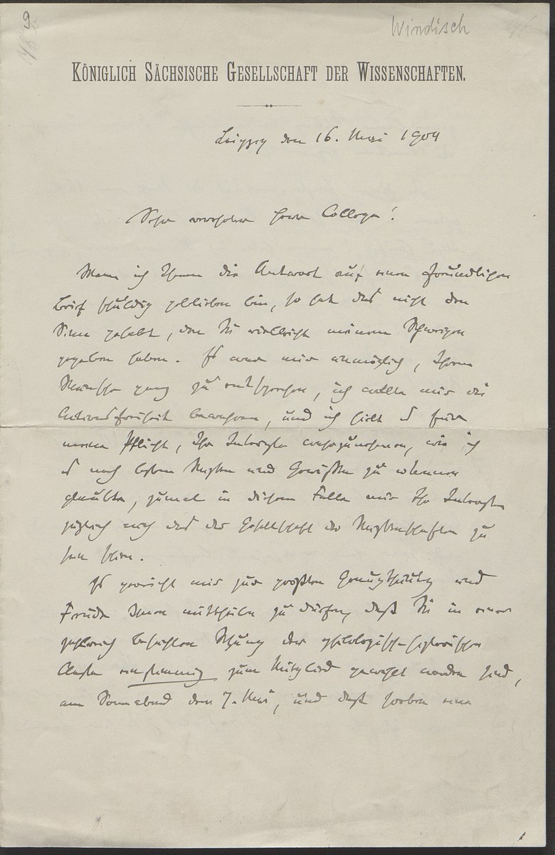 Ernst Windisch an Albert Johannes Köster (Leipzig, 1904-05-16)