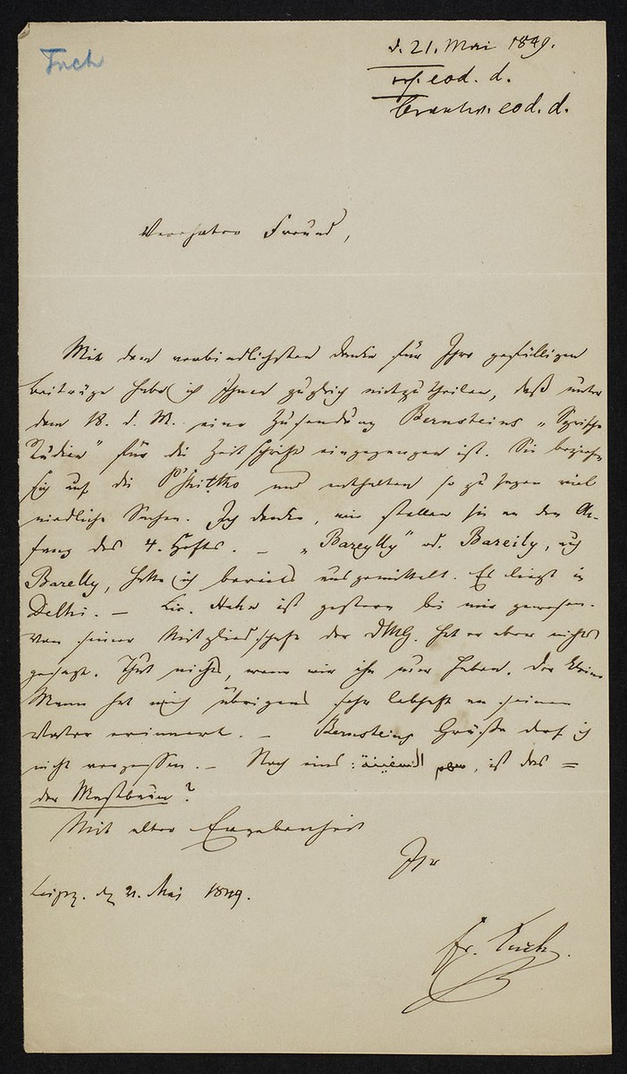 Friedrich Tuch an Heinrich Leberecht Fleischer (Leipzig, 1849-05-21)