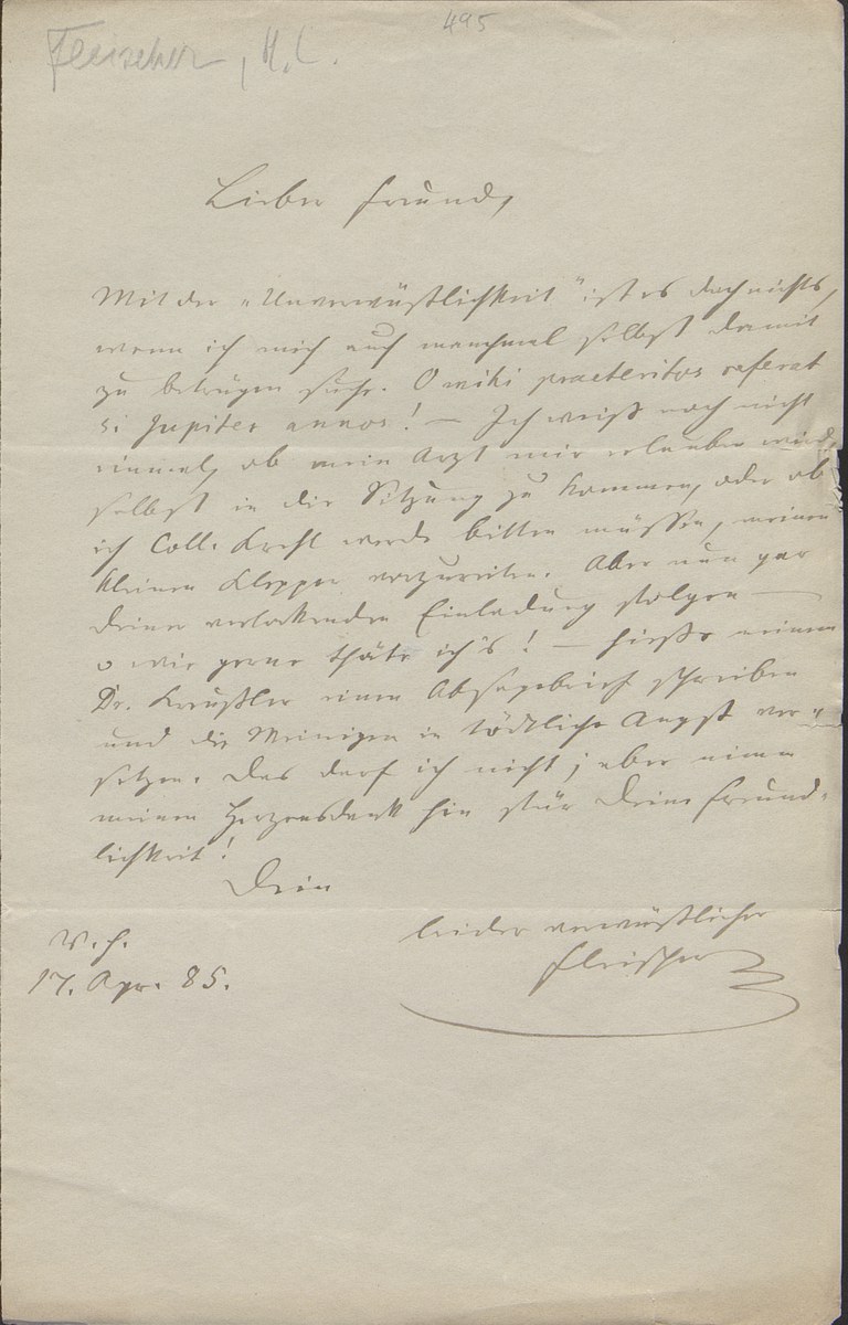 Universitätsbibliothek Leipzig, Nachlass Friedrich Zarncke, NL 249/1/F/495: Heinrich Leberecht Fleischer an Friedrich Zarncke (Leipzig, 1885-04-17) (1885)