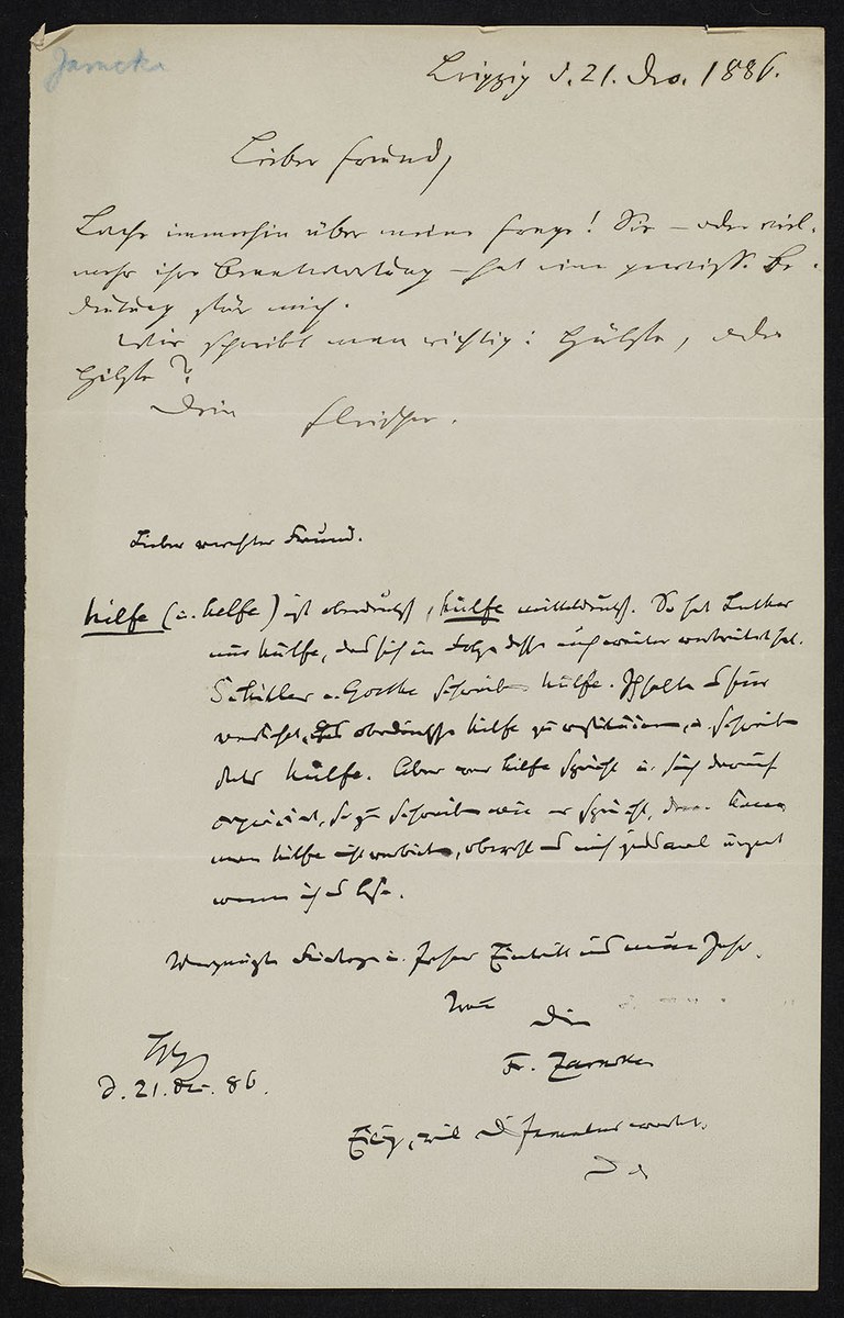 Heinrich Leberecht Fleischer an Friedrich Zarncke (Leipzig, 1886-12-21)