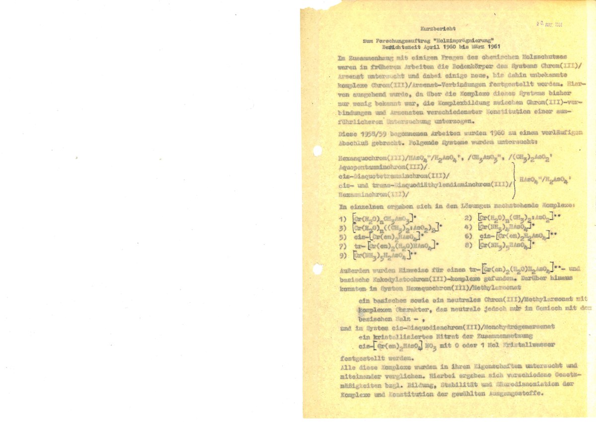 Universitätsarchiv der Technischen Universität Dresden, Fakultät für Mathematik/Naturwissenschaften 1945-68 (XI), XI/242: Arbeitsbericht zum Projekt "Holzimprägnierung" [006] (20.03.1961)