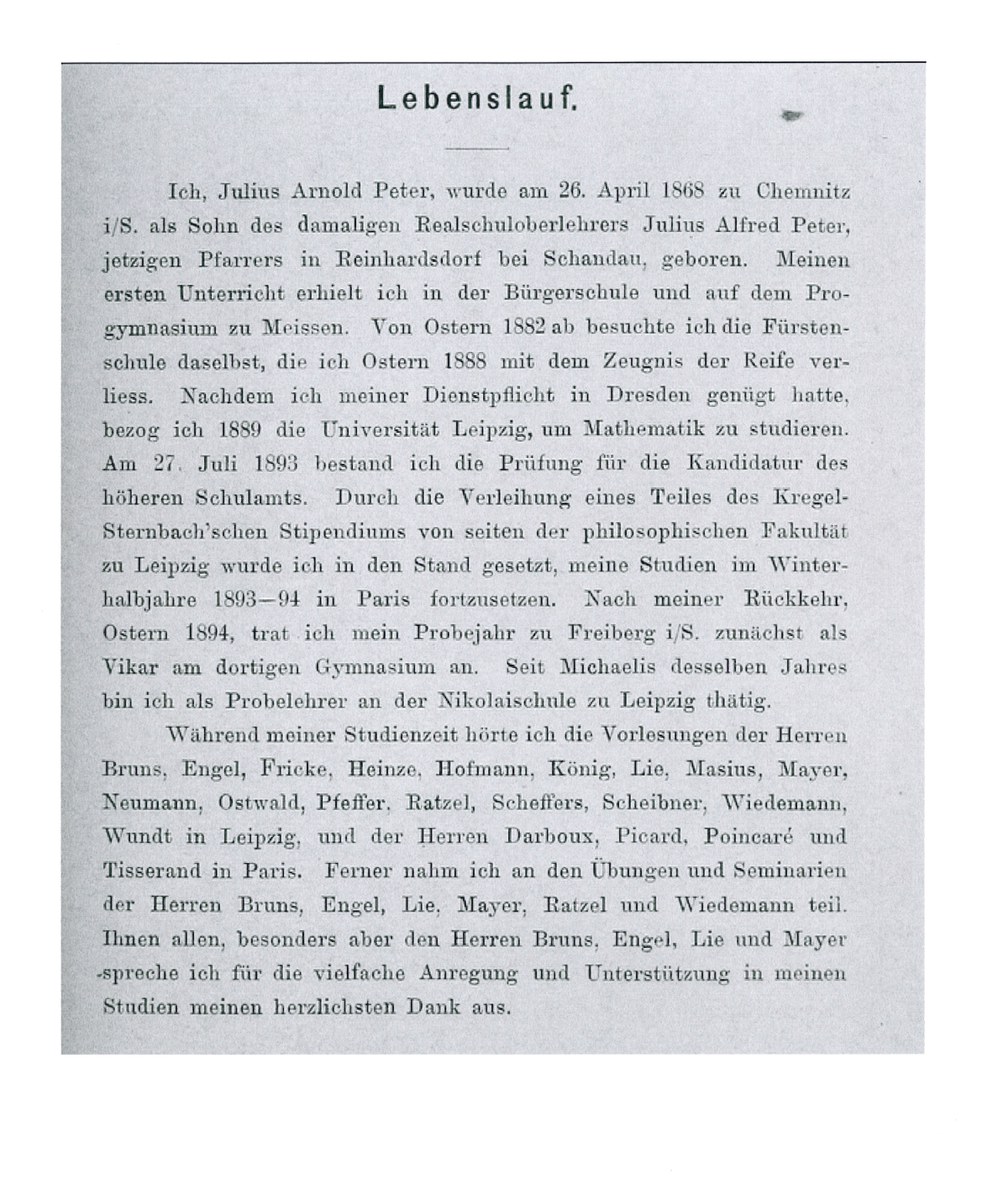 Archiv der Sächsischen Akademie der Wissenschaften zu Leipzig, Akademiegeschichte: Lebenslauf Arnold Peter, S. 1 S.