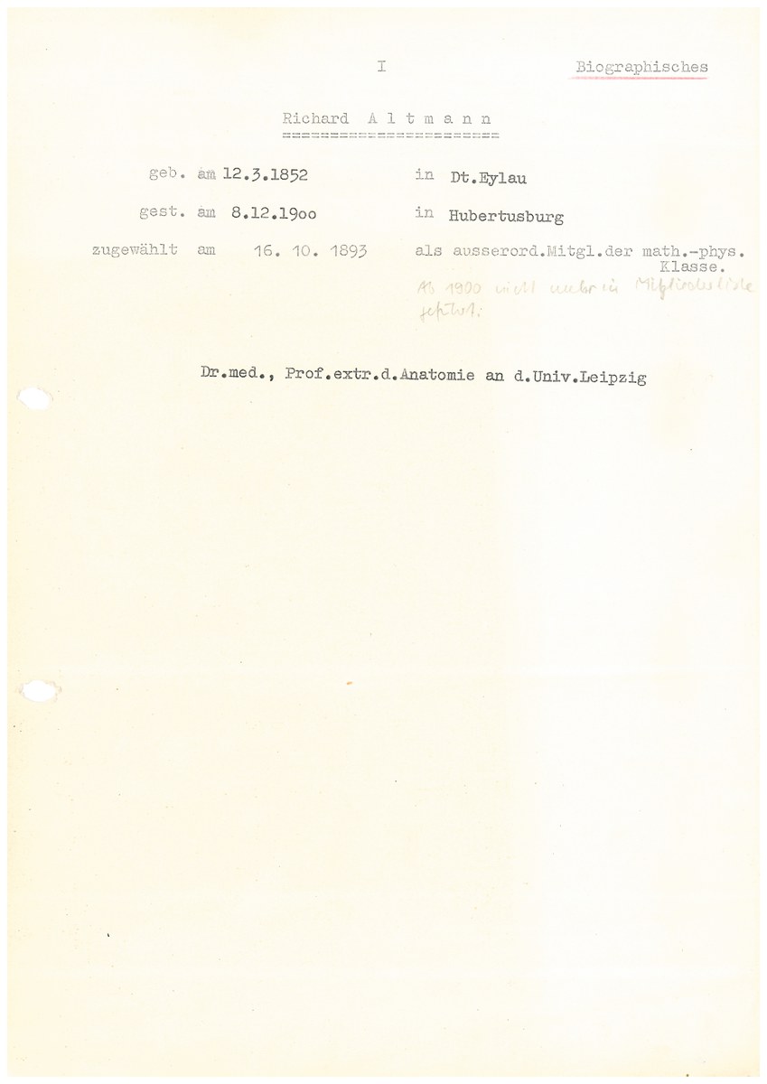 Archiv der Sächsischen Akademie der Wissenschaften zu Leipzig, Altmann, Richard: Mitgliederakte SAW (Altmann, R.), S. 1