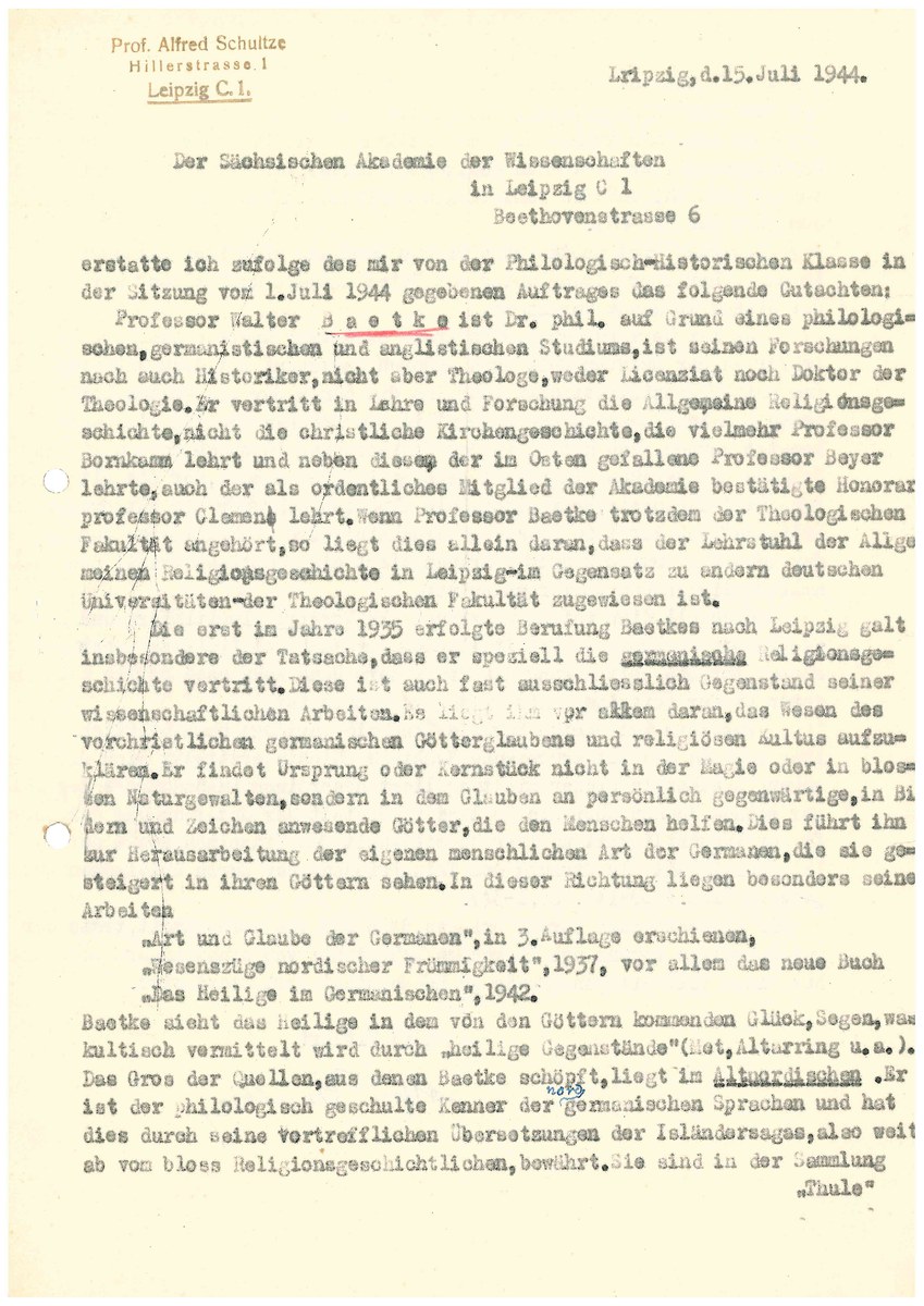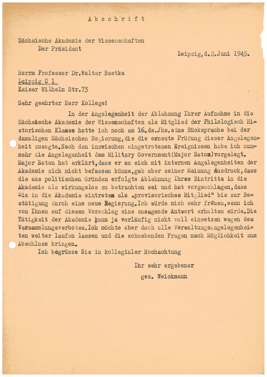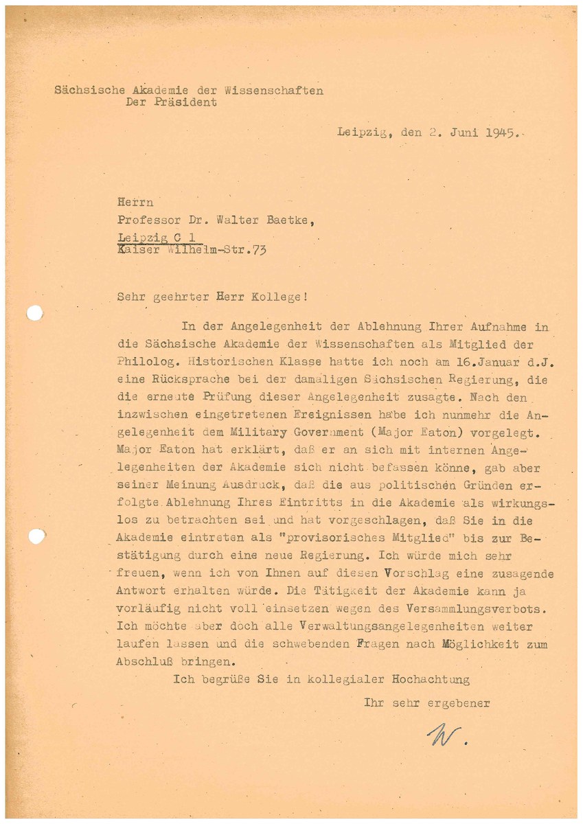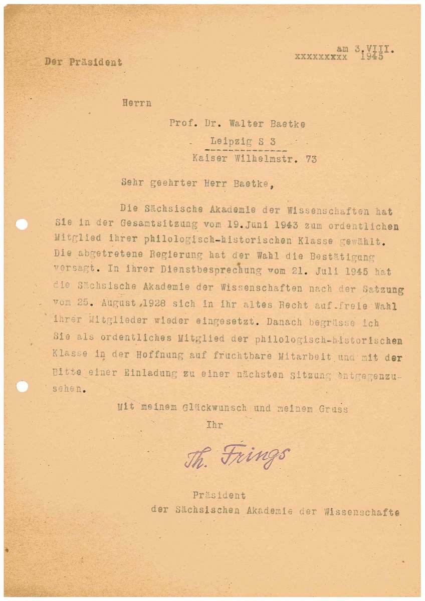 Mitgliederakte SAW (Baetke, W.)