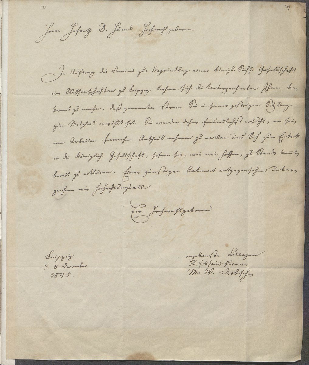 Moritz Wilhelm Drobisch, Gottfried Hermann an Gustav Friedrich Hänel (Leipzig, 1845-12-08)