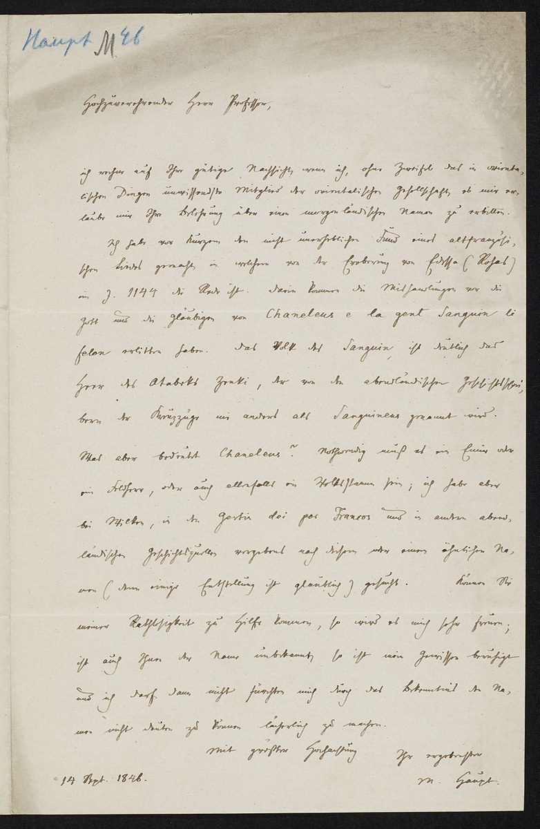 Moriz Haupt an Heinrich Leberecht Fleischer (Leipzig, 1846-09-14)