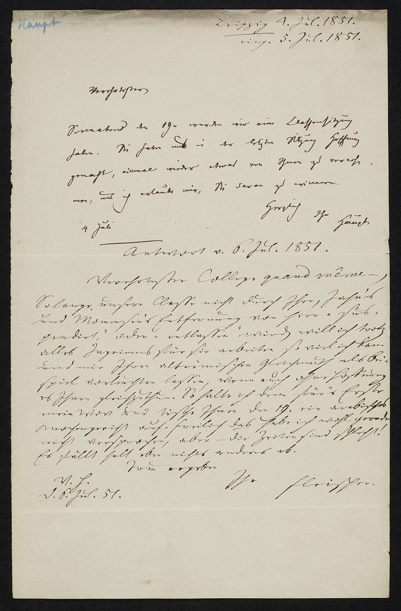 Moriz Haupt an Heinrich Leberecht Fleischer (Leipzig, 1851-07-04)