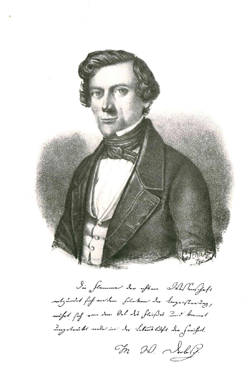 Archiv der Sächsischen Akademie der Wissenschaften zu Leipzig, Akademiegeschichte: Portrait Moritz Wilhelm Drobisch mit Unterschrift (ca. 1830)