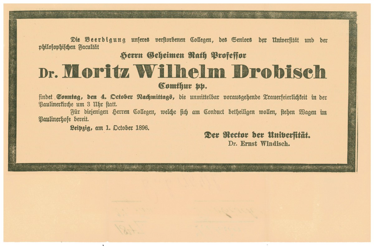 Archiv der Sächsischen Akademie der Wissenschaften zu Leipzig, Drobisch, Moritz Wilhelm: Todesanzeige Moritz Wilhelm Drobisch (1896), S. 1